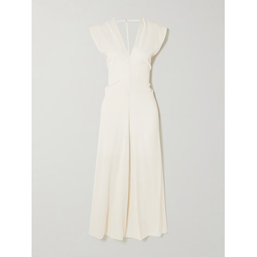 Dopasowana sukienka midi bez rękawów w kolorze kości słoniowej z głębokim dekoltem w kształcie litery V